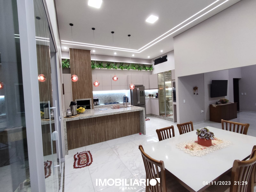 ✅ Contendo: 01 suíte, 02 quartos, BWC social, sala (pé direito duplo), copa/cozinha gourmet c/ churrasqueira (pé direito alto), lavabo, lavanderia, estendal e garagem para 4 carros.