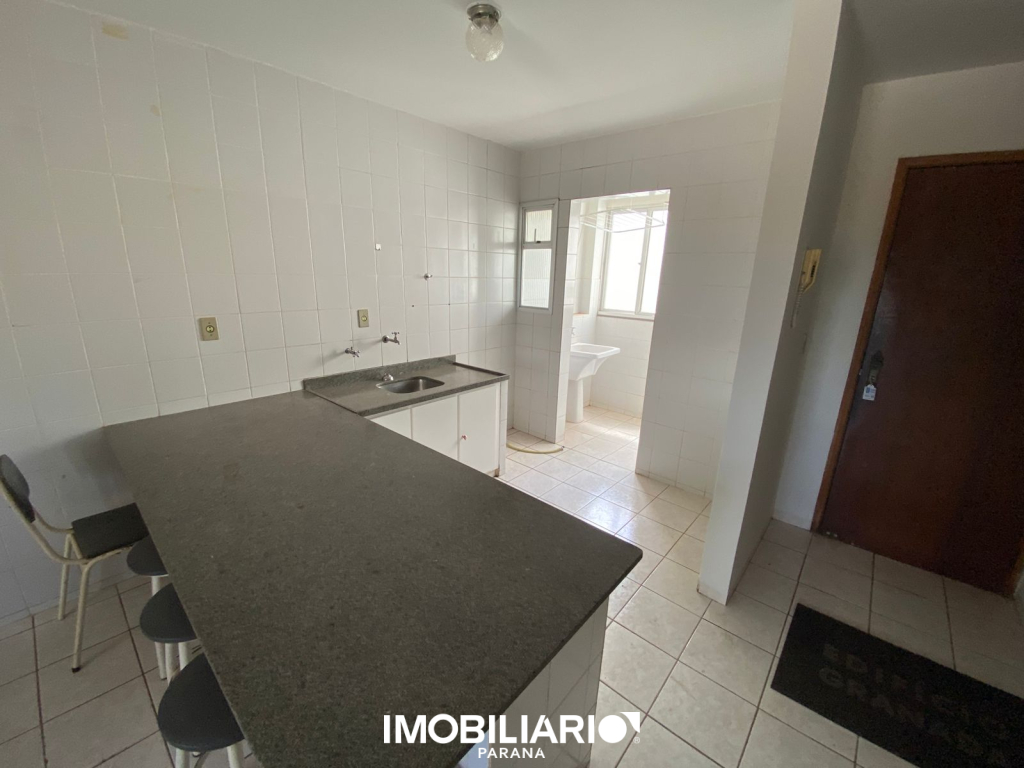 EDIFÍCIO RESIDENCIAL GRANADA – 402 (ÚLTIMO ANDAR, FUNDOS. Contendo duas suítes (com guarda-roupas embutidos), sala e cozinha conjugadas, lavanderia e garagem para UM veículo de pequeno porte.