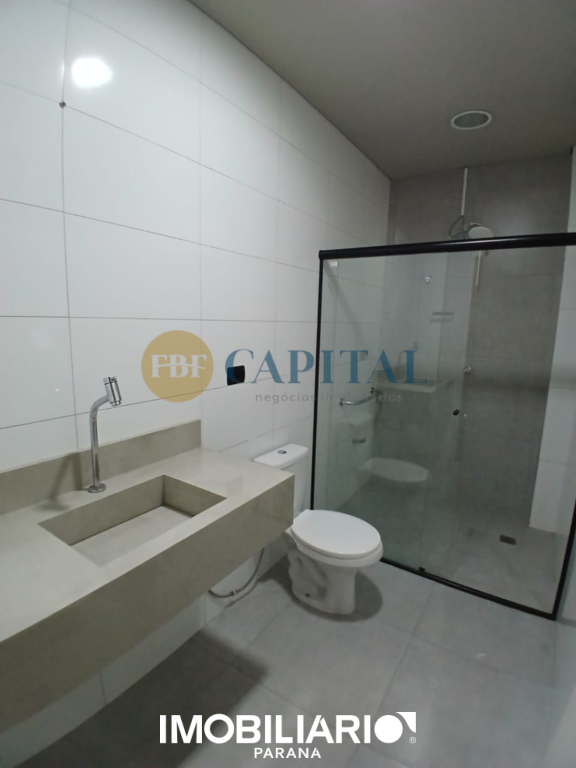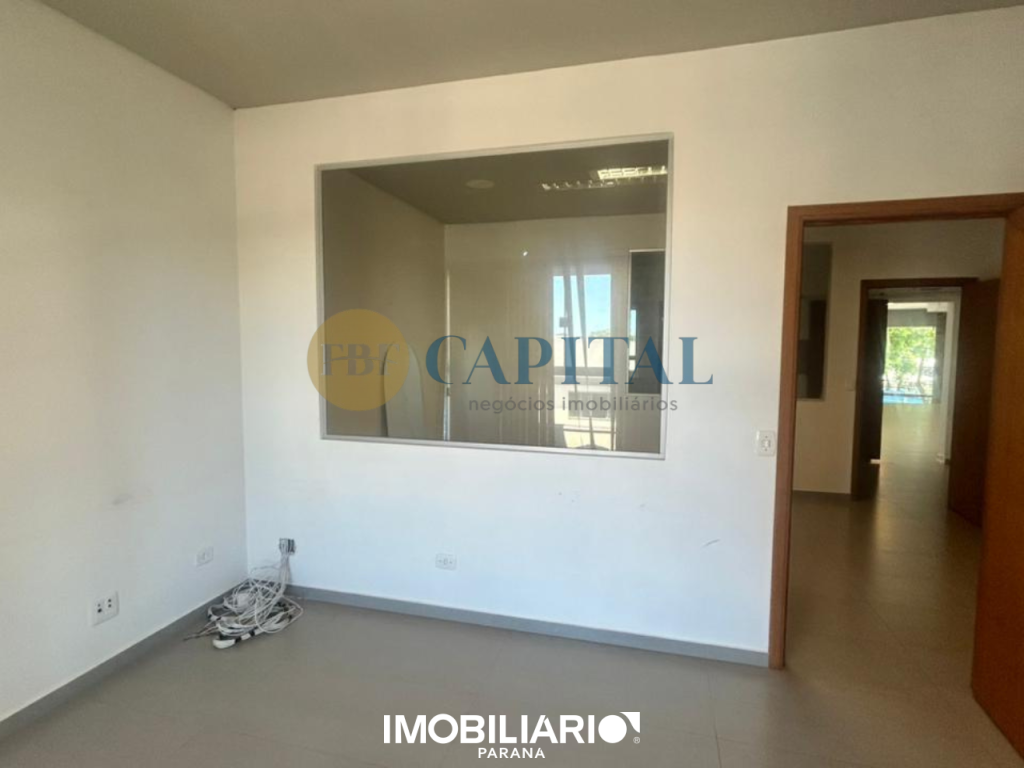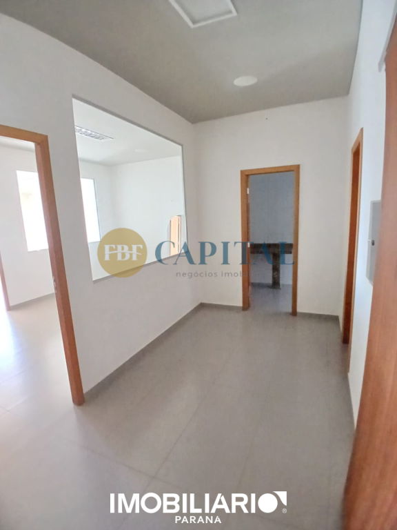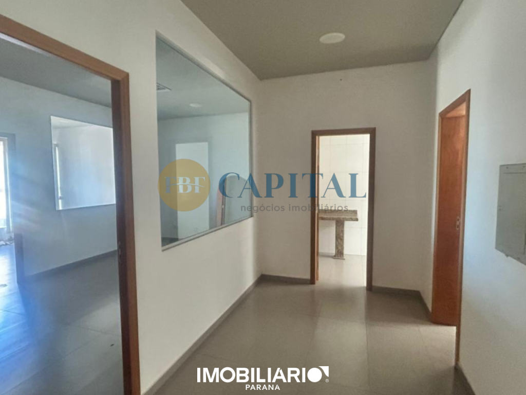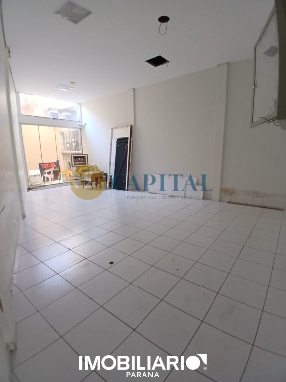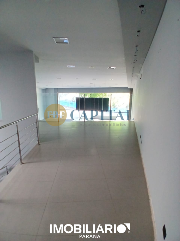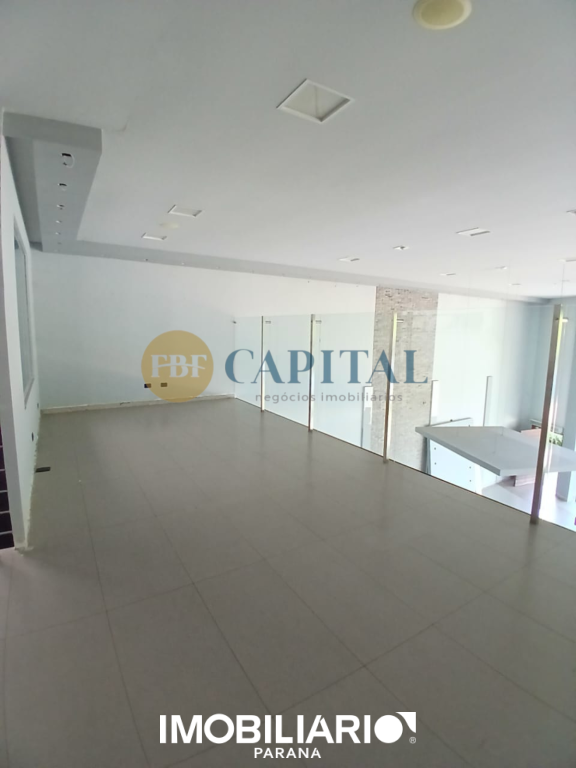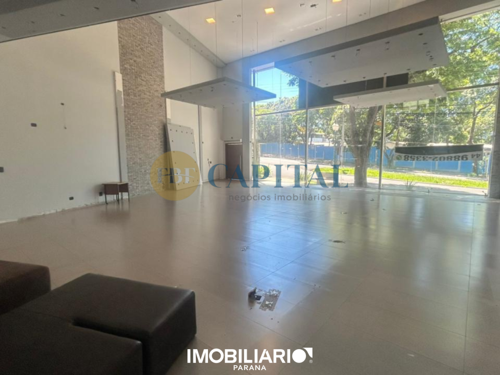 Salão comercial localizado na região central de Umuarama, com mais de 430,00m² de área construída e projeto arquitetônico contemporâneo. Fachada imponente totalmente envidraçada, com amplos panos de vidro do piso ao teto e porta de acesso pivotante.