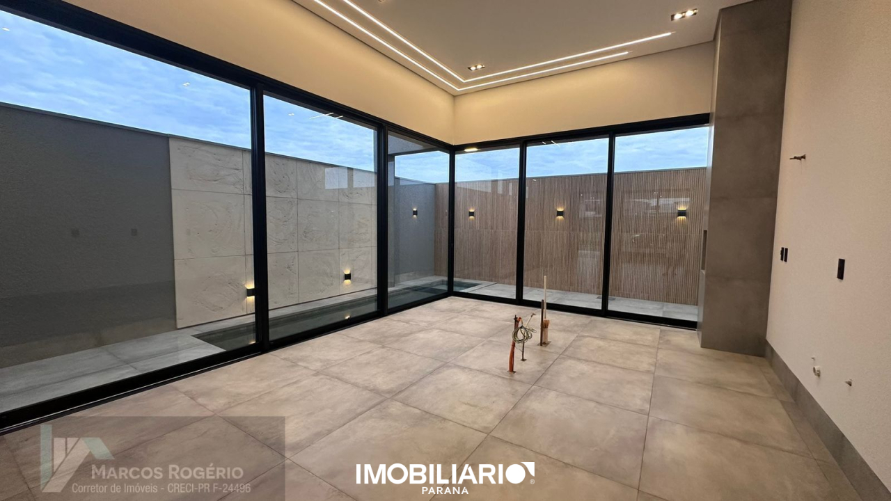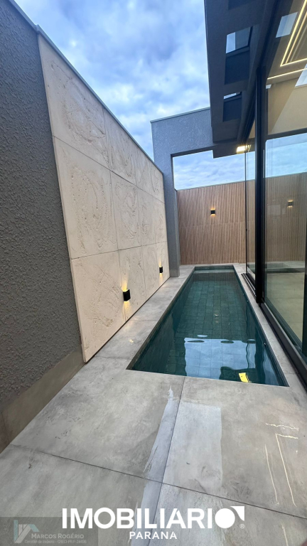 A casa contém 3 suítes, sendo 1 master com closet;Garagem ampla p/ 2 carros, lado a lado,Sala e Área Gourmet com pé direito de 4,50m,Bwc social,Lavanderia,Água com aquecimento solar (boiler), Piscina com aquecimento solar.