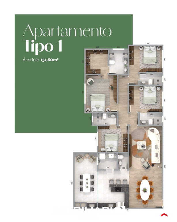 Apartamento Tipo 1 – 151,80 m² de área privativa