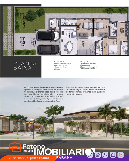 ⚠Residências com área de 112,00 m² construção, sendo: