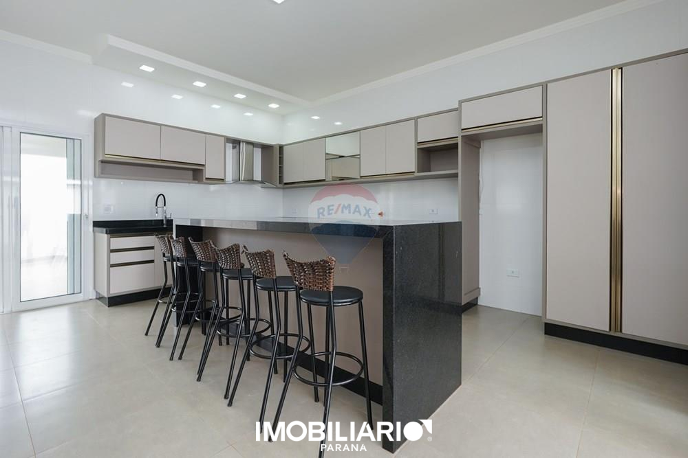 A ampla cozinha, equipada com móveis planejados e elegante granito preto São Gabriel, é um verdadeiro convite à convivência. Funcional, conecta-se harmoniosamente aos demais ambientes através de portas de correr que podem ser fechadas ou abertas a depender da ocasião, valorizando o conceito de integração ou privacidade.