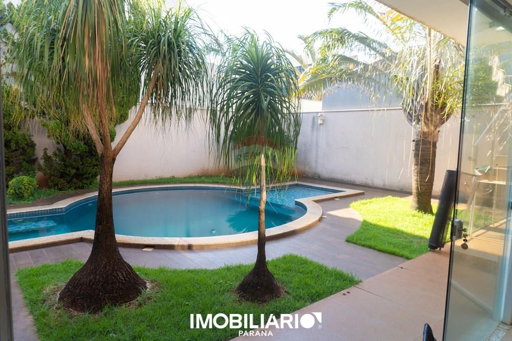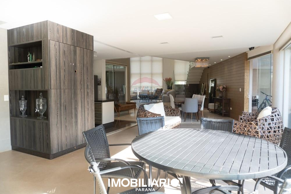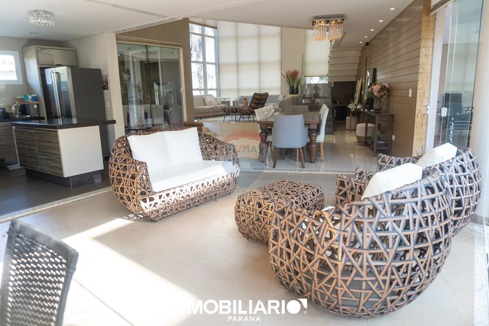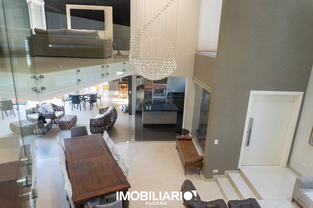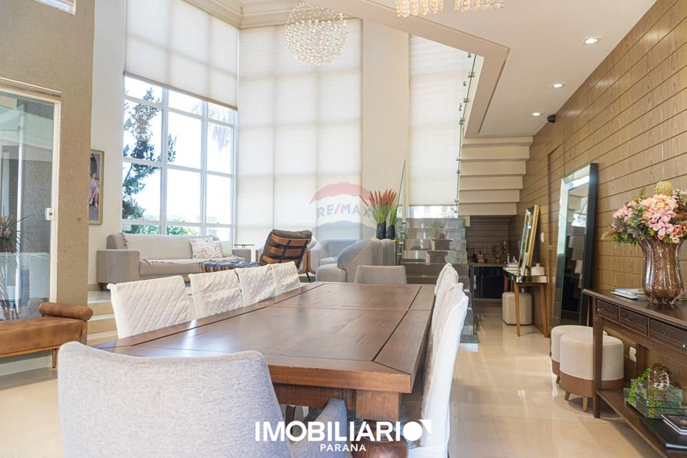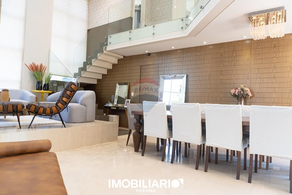 Residência de alto padrão no Condomínio Ecoville Residence, com 594 m² de terreno (dois lotes de esquina) e 392 m² de área construída, distribuída em 2 pavimentos, projetada para quem busca conforto, sofisticação e presença arquitetônica.No pavimento superior, a área íntima oferece uma aconchegante sala íntima, além de uma elegante suíte master com sacada, closet amplo e banheiro espaçoso. O andar conta ainda com um espaço para escritório e 2 demi-suítes amplas e bem distribuídas, garantindo privacidade e funcionalidade.